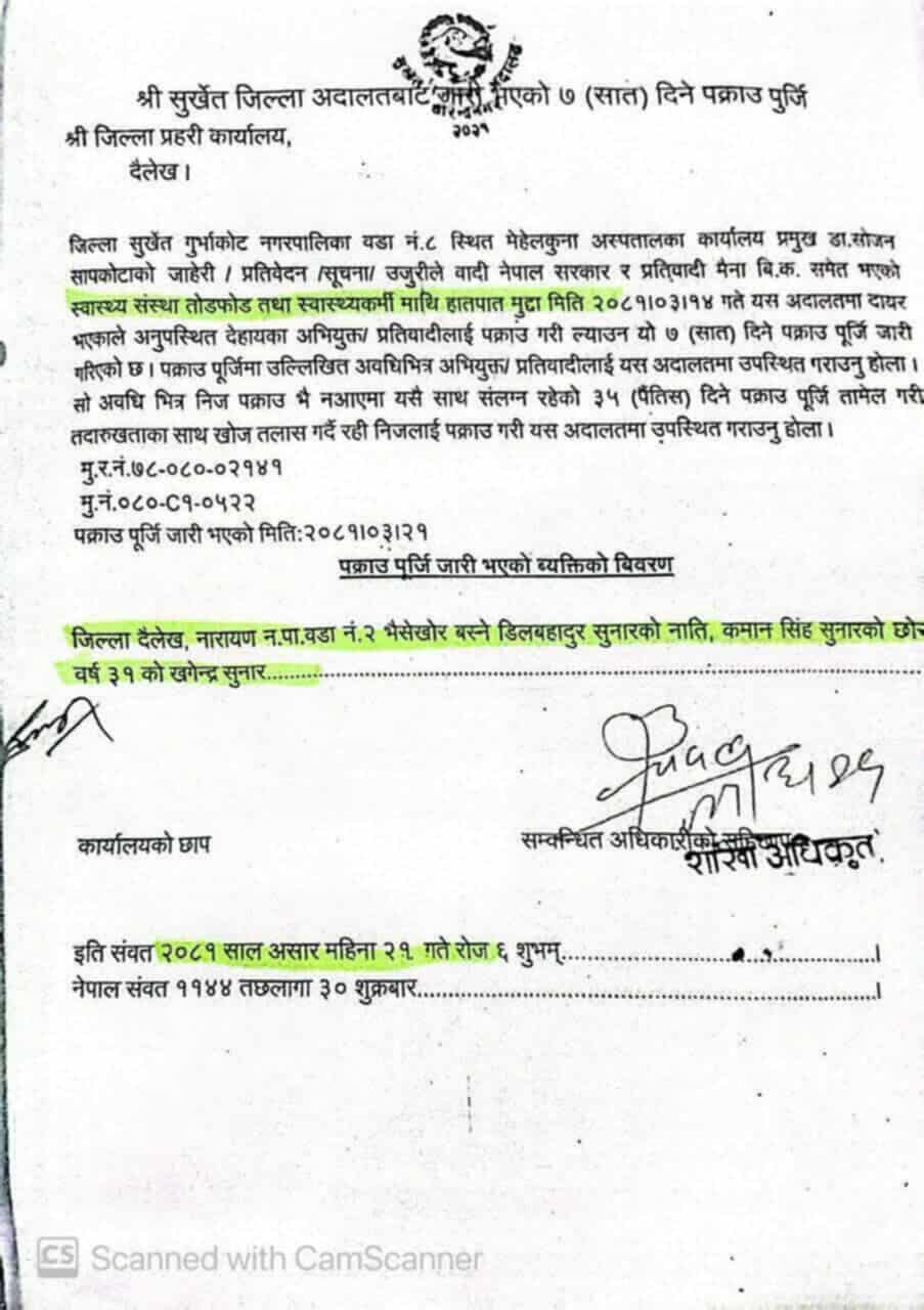 काठमाडौं, कार्तिक ९ – अन्तरिम सरकारको मन्त्री बन्ने तयारीमा रहेका खगेन्द्र सुनारमाथि दुईवटा मुद्दामा फरार अभियुक्तको रूपमा नाम दर्ता भएको खुलेको छ। नेपाल प्रहरीको क्रिमिनल रेकर्ड सिस्टम (सीआरएस) अनुसार उनीमाथि दुई छुट्टाछुट्टै अदालतले जारी गरेको पक्राउ पुर्जी अझै कार्यान्वयन भएको छैन।