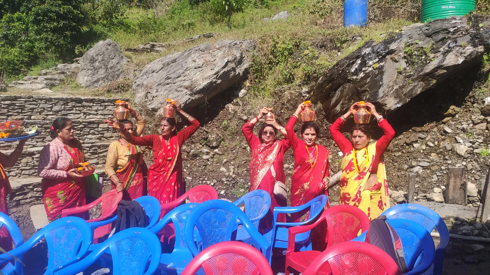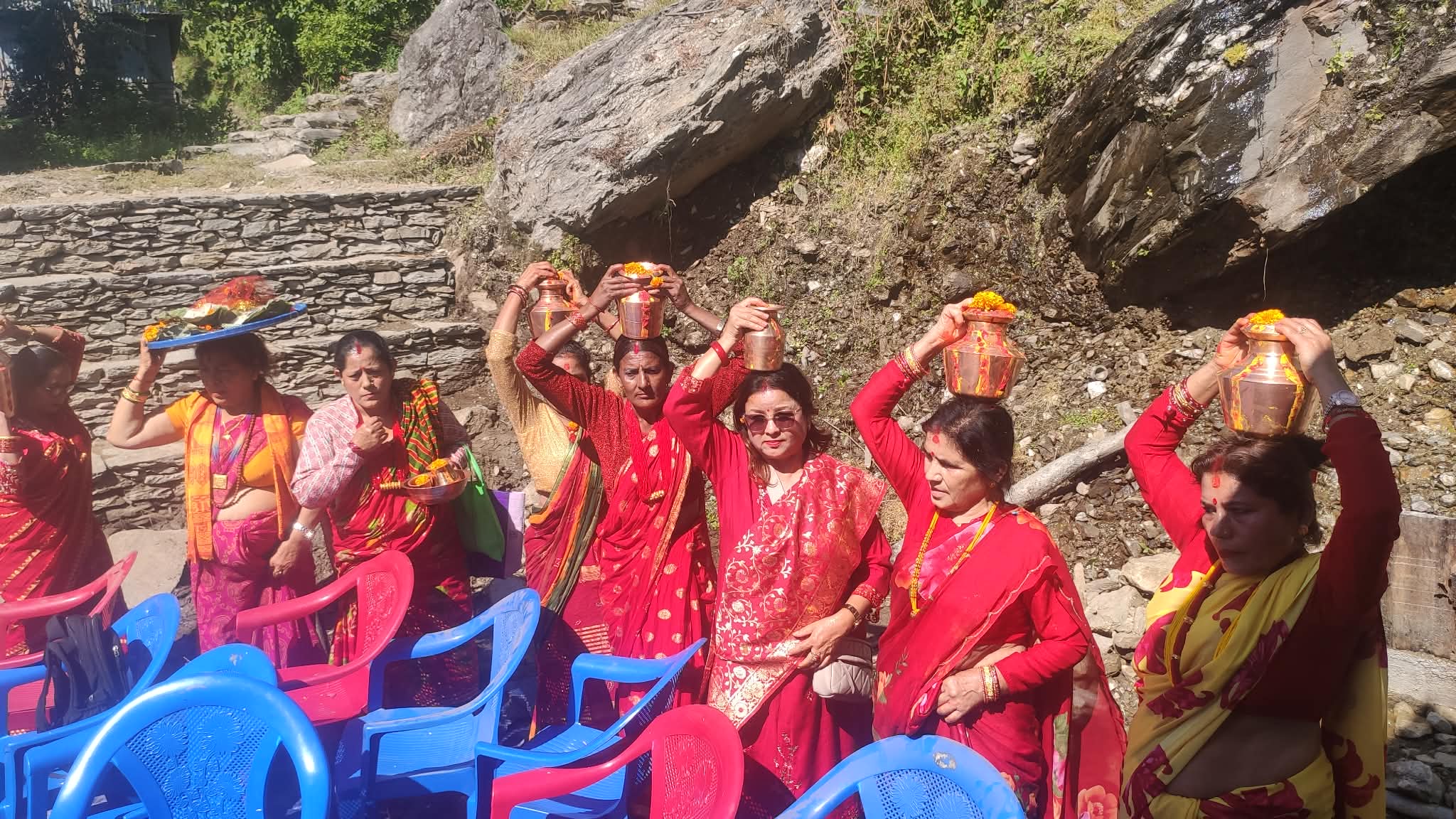 कार्यक्रम मा कलस यात्रा, बाजा, झाक्री नाच गर्दै देबता स्थापना गरियको थियो ।