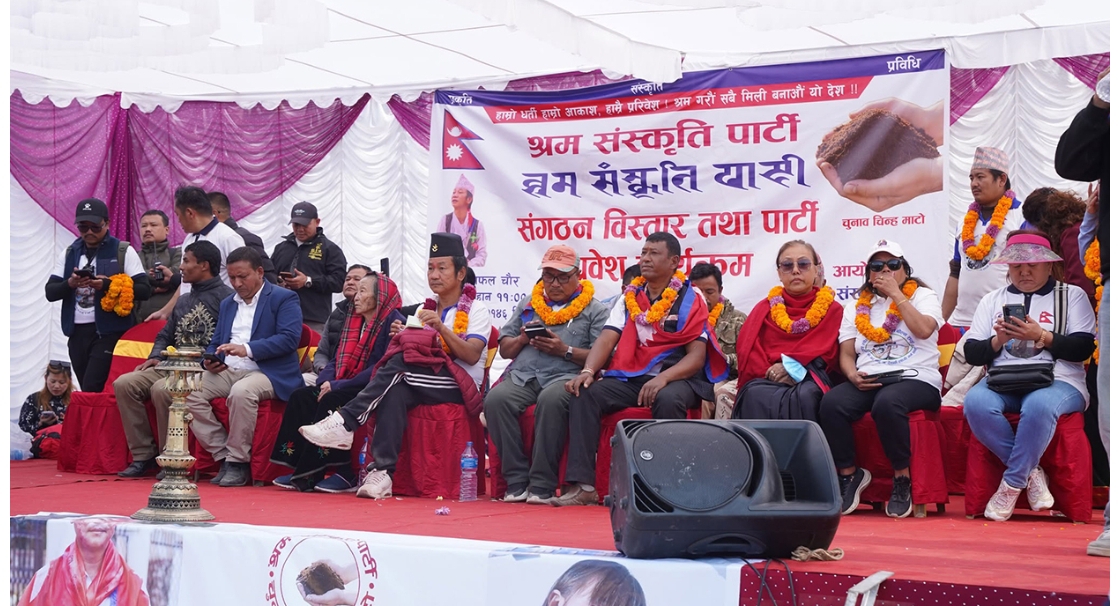 काठमाडौं, २२ मंसिर – हर्क साम्पाङ नेतृत्वको श्रम संस्कृति पार्टीले काठमाडौंमा आफ्नो पहिलो औपचारिक सभा सम्पन्न गरेको छ। निर्वाचन आयोगमा दल दर्ता गरेपछि सिफल चौरमा आयोजना गरिएको यस कार्यक्रममा पार्टी प्रवेश तथा संगठन विस्तार मुख्य उद्देश्य रहेको बताइएको छ।