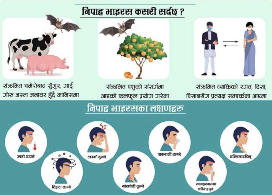 जनचेतना सन्देश: कच्चा फल वा रस नखानु, चमगादड़ र संदिग्ध जनावरसँग टाढा रहनु र कुनै लक्षण देखिए तुरुन्त स्वास्थ्य जाँच गराउनु आवश्यक छ।